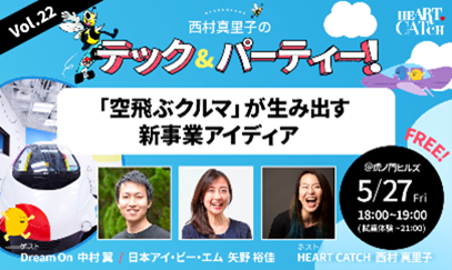テクノロジー・デザイン・アート・ファッション…あらゆるトレンドにアンテナを向けているHEART CATCH 西村真里子氏が“今”気になっているトピックを国内外の豪華なゲストを迎え、虎ノ門ヒルズを舞台にディスカッションを展開する「西村真里子の“テック&パーティー!”」。今回のテック&パーティー!では「空飛ぶクルマ」で未来を体験することにより、新規事業のタネを見つける実験に挑戦します。