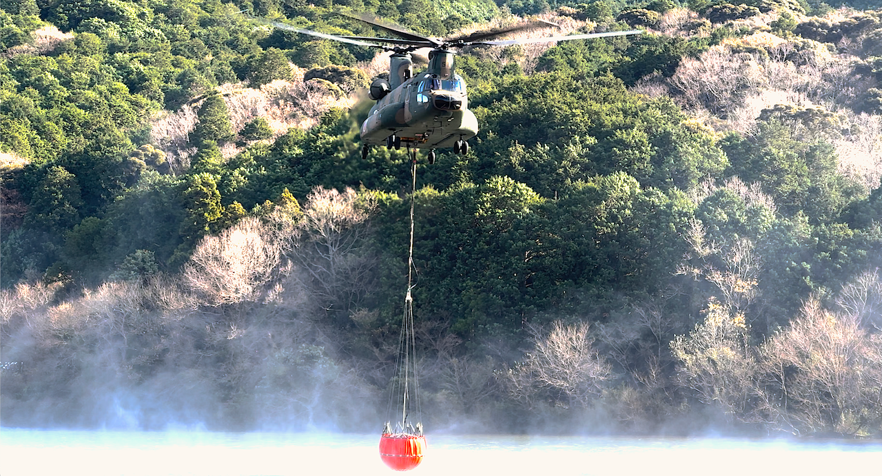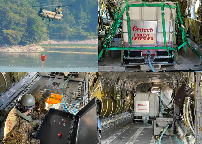 当社は、自衛隊の協力のもと、ヘリコプター用消火剤注入システム「FEI(Fitech Easy Injection)」を開発しました。このシステムは林野火災の消火に高い効果を発揮し、陸上自衛隊が実施する林野火災対策でも活用されています。