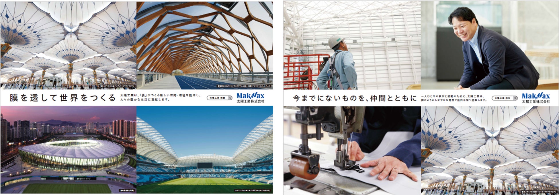 これら検証結果を太陽工業が採用し、グローバルな実績写真を活用した「ブランドイメージ」、仕事風景や社員の写真を活用した「帰属意識や親しみ」を促す2種類のクリエイティブ広告を本産学共同研究へ提供しました。
