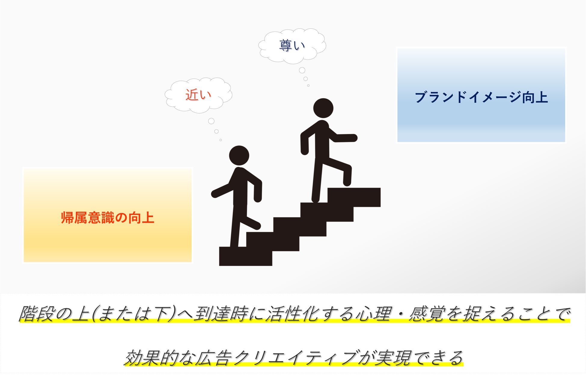 階段の上は「ブランドイメージ」、下は「帰属意識」を高めるクリエイティブが有効