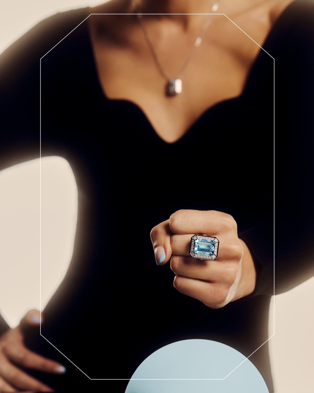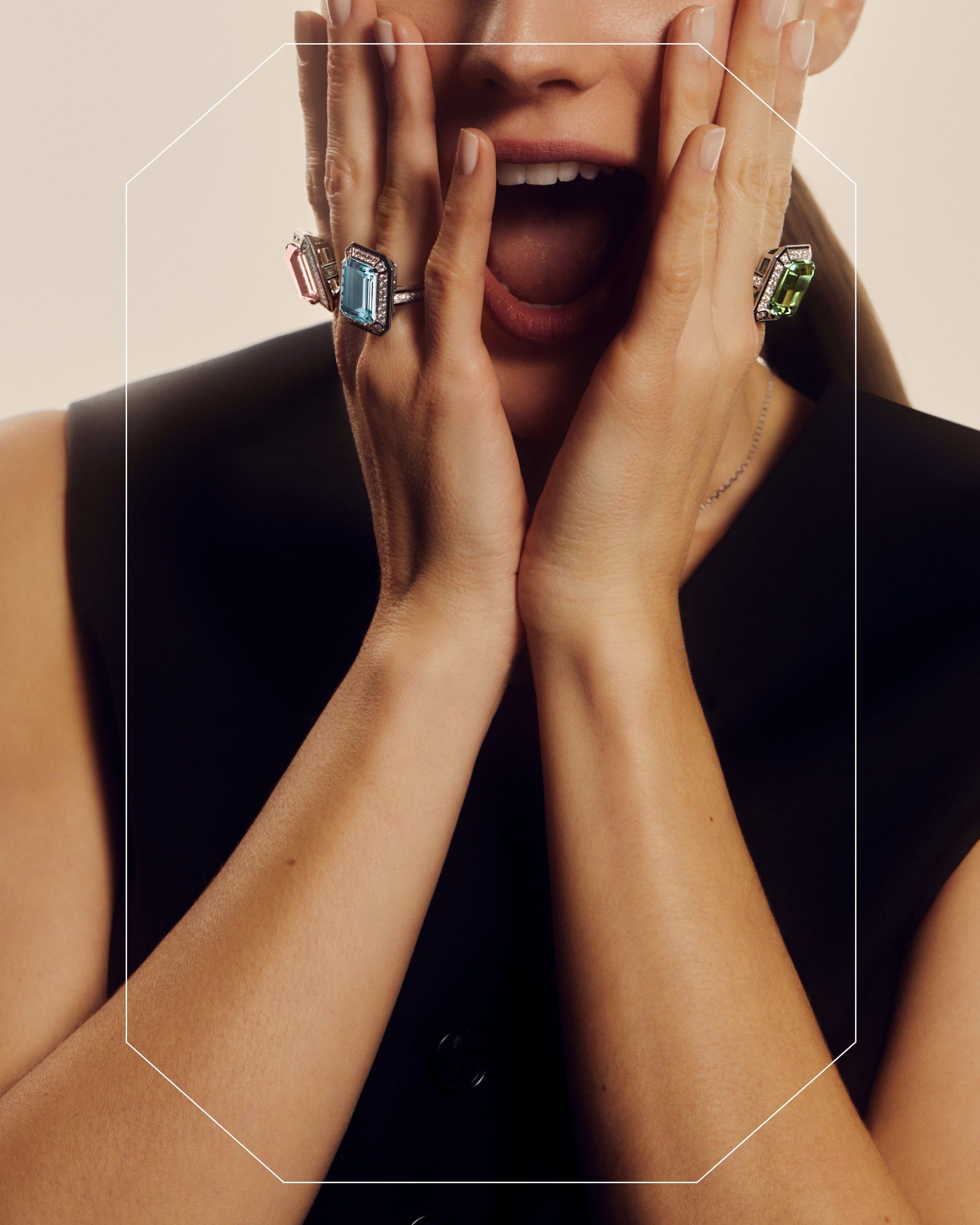 2022年5月12日(木)より、ブシュロンは「ヴァンドーム リズレ」の新作ジュエリーを発売いたします。「ヴァンドーム リズレ」は、メゾンが大切にしている建築のコード、パリのヴァンドーム広場を俯瞰で見たときの八角形を反映した幾何学的なデザインが特徴です。センターストーンを縁取るブラックラッカーのラインが際立つグラフィカルなデザインのこのコレクションに、新たにファインジュエリーと、トルマリン、モルガナイト、アクアマリンのカラーストーンを配した新作リングとネックレスが登場します。
