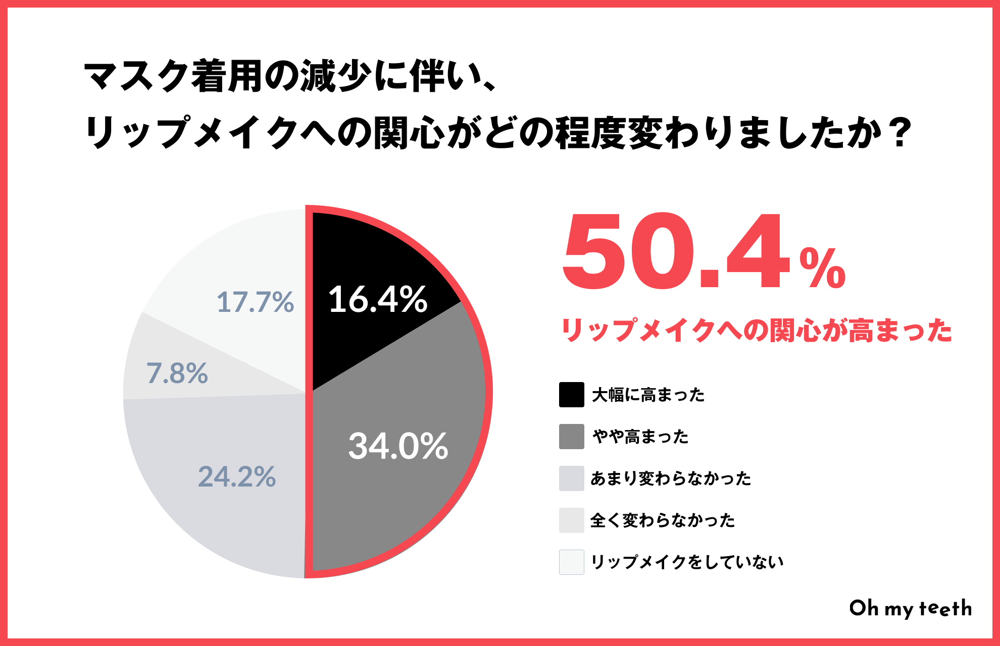 ◯マスク緩和で美容意識に変化、約50%の女性が口元意識の高まりを実感