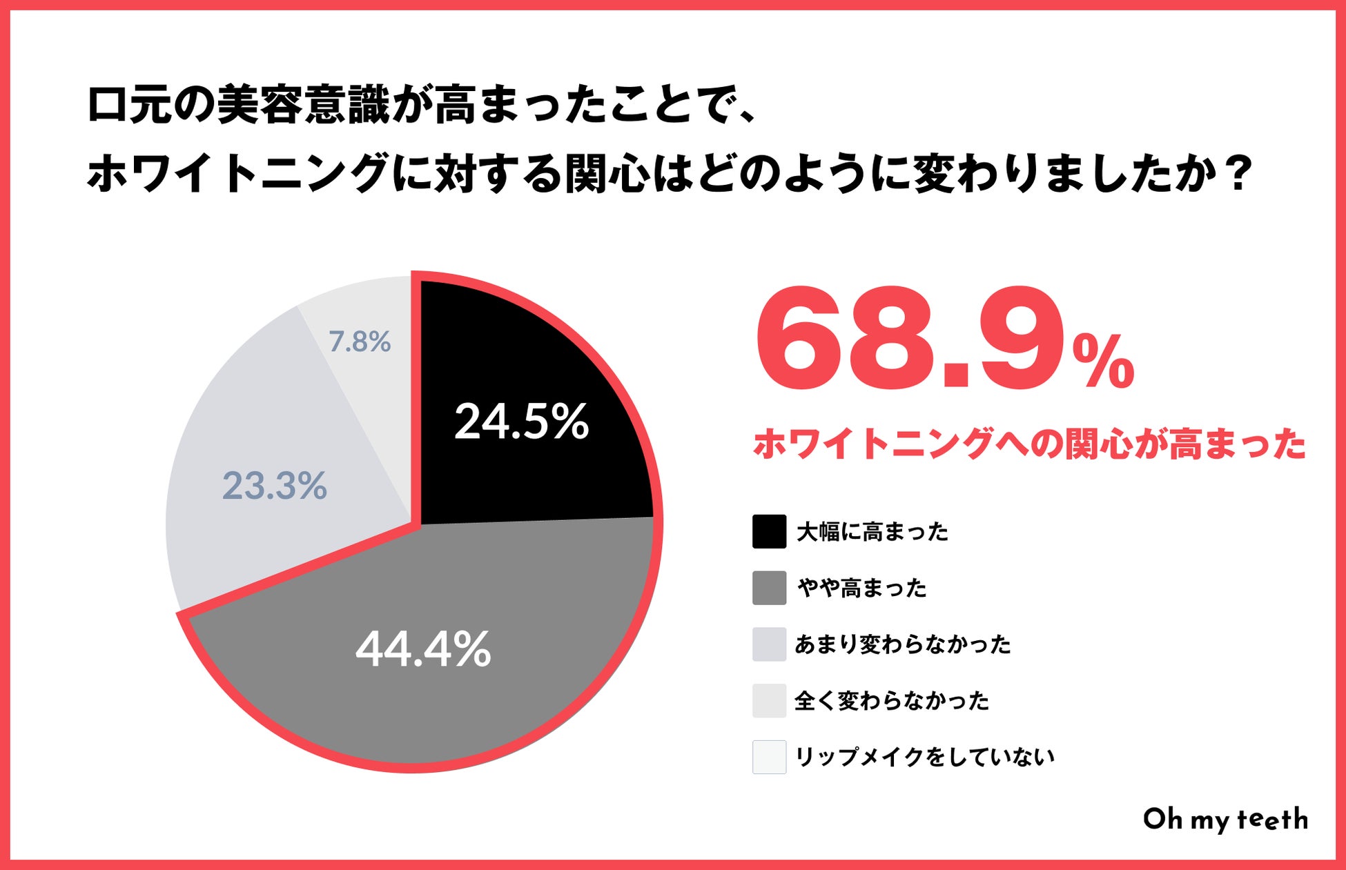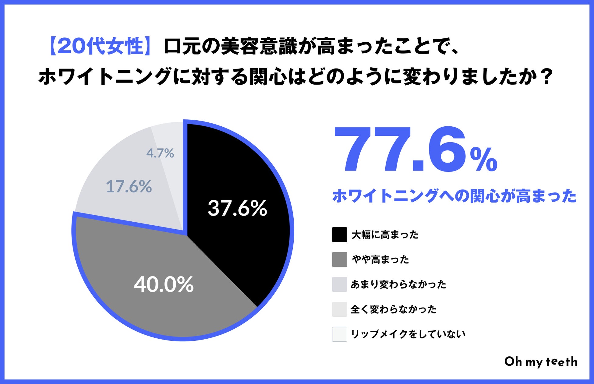 これらの市場動向を背景に、オンライン完結型のホワイトニングサービスを提供する株式会社Oh my teethは、20代から50代の女性を対象に、マスク緩和が口元美容に対する意識に与えた変化について調査を実施いたしました。