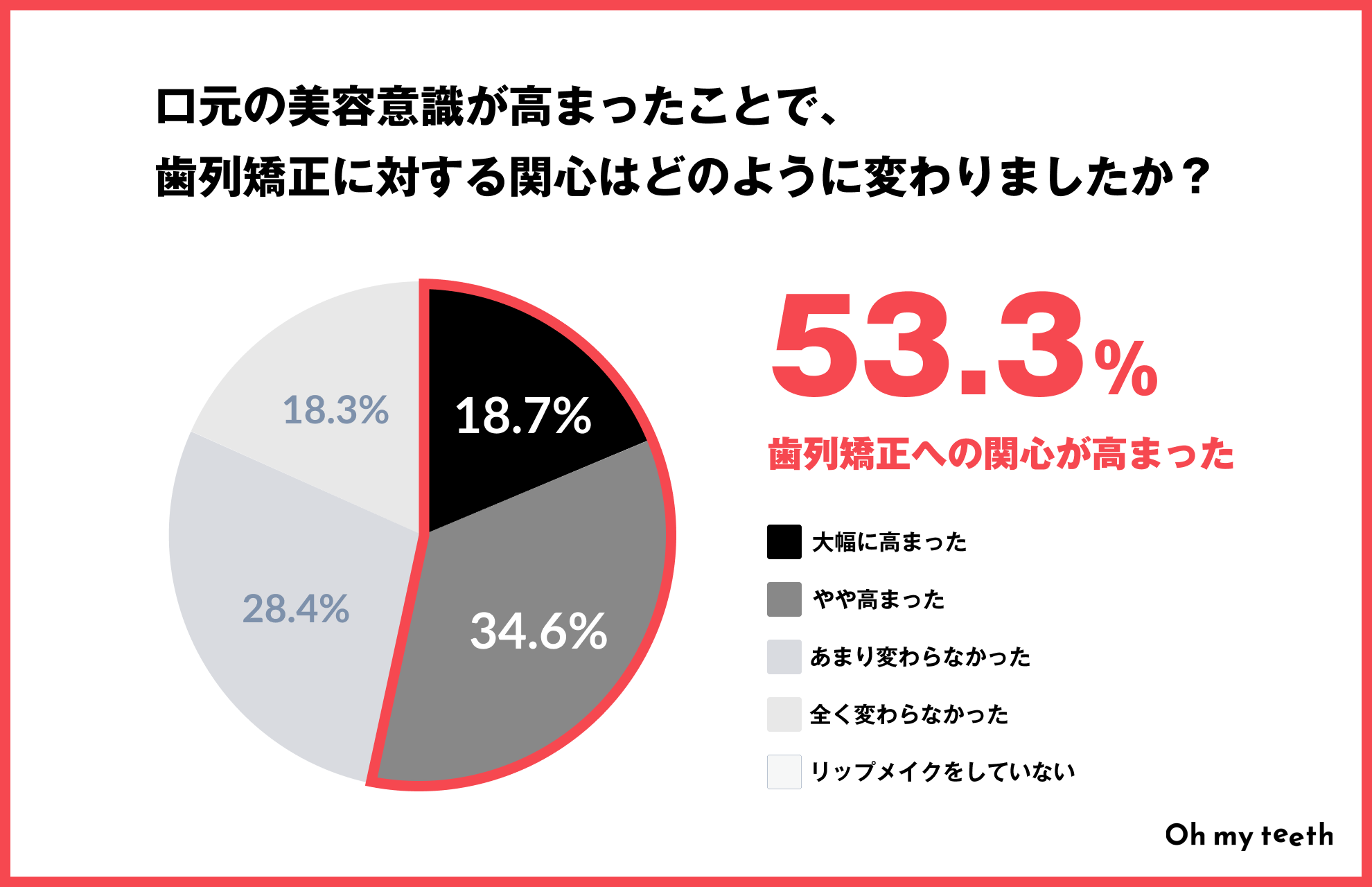 ◯マスク緩和後、女性の二人に一人が歯列矯正への関心を強める