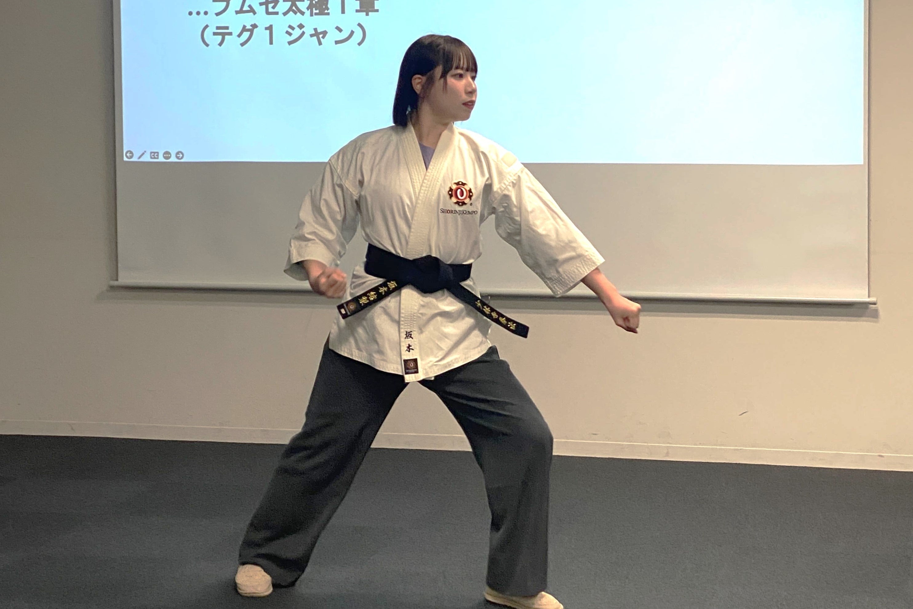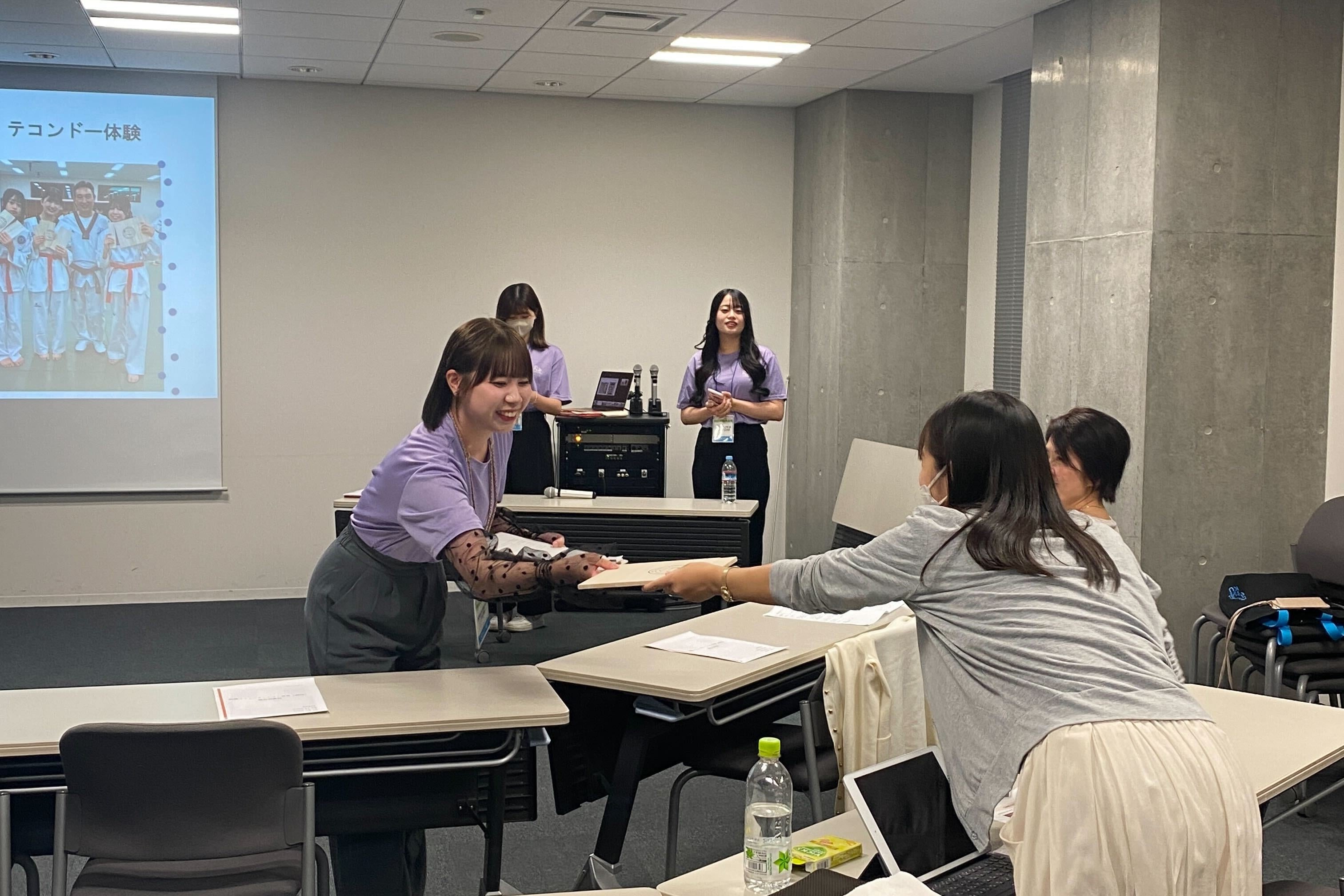 現地で体験したことや学んだこと、自身の成長等について発表を行い、発表の最後には、テコンドーやKポップの音楽に合わせたダンスも披露。充実した実習を通して、大きく成長した様子を伺うことができました。また3名の参加者のうち2名が、来年度、1年間の交換留学を希望しています。