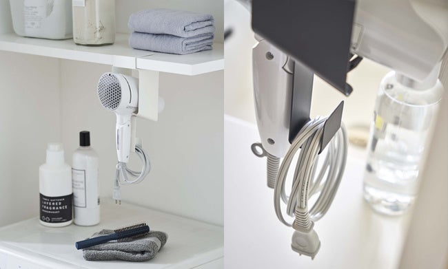 ドライヤーは手前からサッと入れるだけの簡単収納。