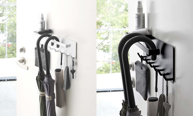 扉につけられる傘立てや、ドライヤーを棚下に浮かせて収納できるアイテムなど、新商品発売中です。