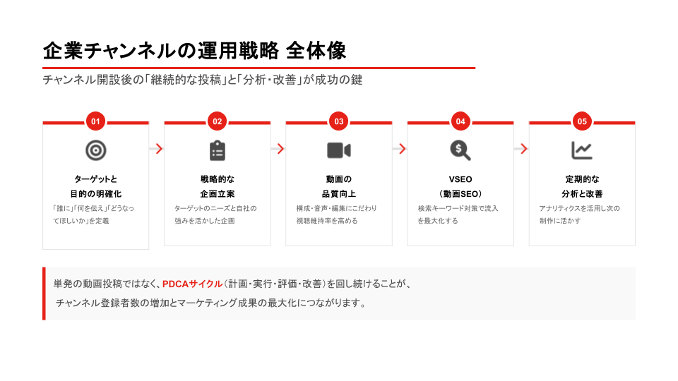 今回ご紹介した内容は、企業チャンネルを成功させるための基本的な要素です。