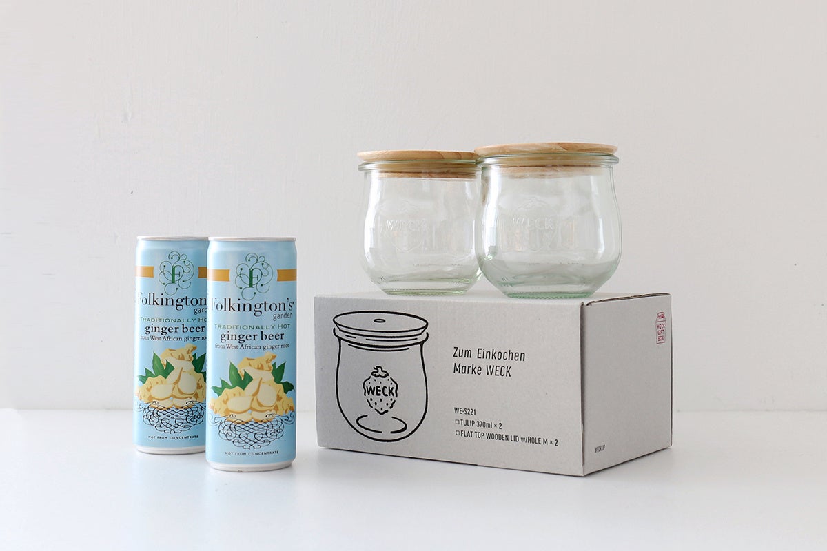 イギリス発のスパークリングドリンク「Folkington's」とドイツのガラスキャニスター「WECK」による暑い夏にぴったり、すっきり爽やかなコラボアイテムが登場!