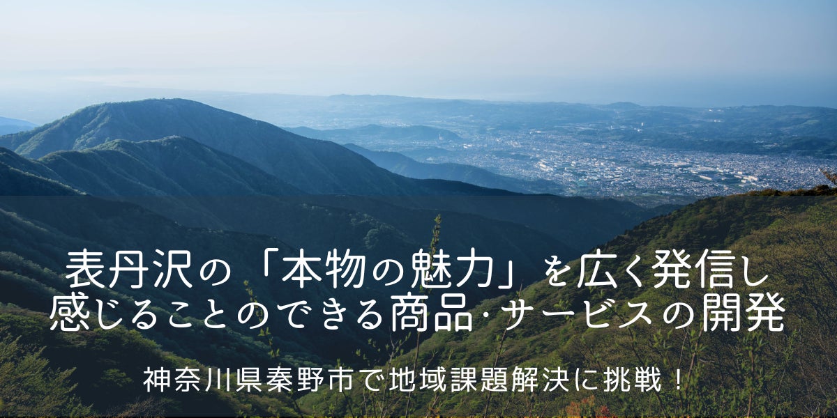 神奈川県央の西部に位置する秦野市は、市の中心部は新宿駅や横浜駅から約1時間でアクセスができます。一方、市域の半分以上には森林が広がり、「名水百選」選抜総選挙のおいしい名水部門で全国第1位に選ばれた湧水があるなど、豊かな自然に恵まれています。神奈川の屋根ともいわれる丹沢山地の山並み・表丹沢には様々な魅力が存在しています。表丹沢の「本物の魅力」を伝える商品やサービスの開発に取り組んで頂きます。