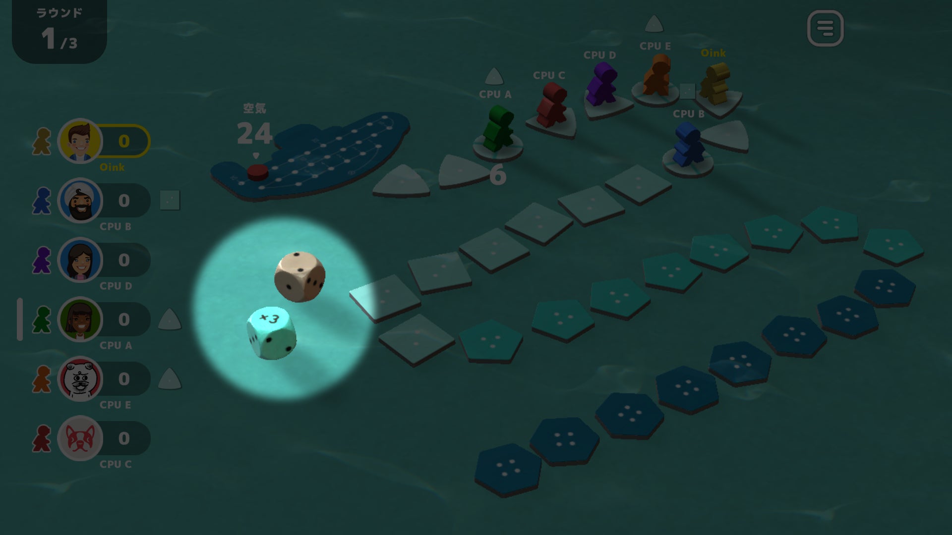 iOS/Android版「レッツプレイ!オインクゲームズ」は収録されている8ゲームのうち、「海底探険」のプレイが無料。他のゲームは遊びたいものだけを選んで購入することができます(各650円)。ゲームを買っていない人でも、友達と一緒に遊ぶ時は、1人までなら参加することができる「お試し」機能も。