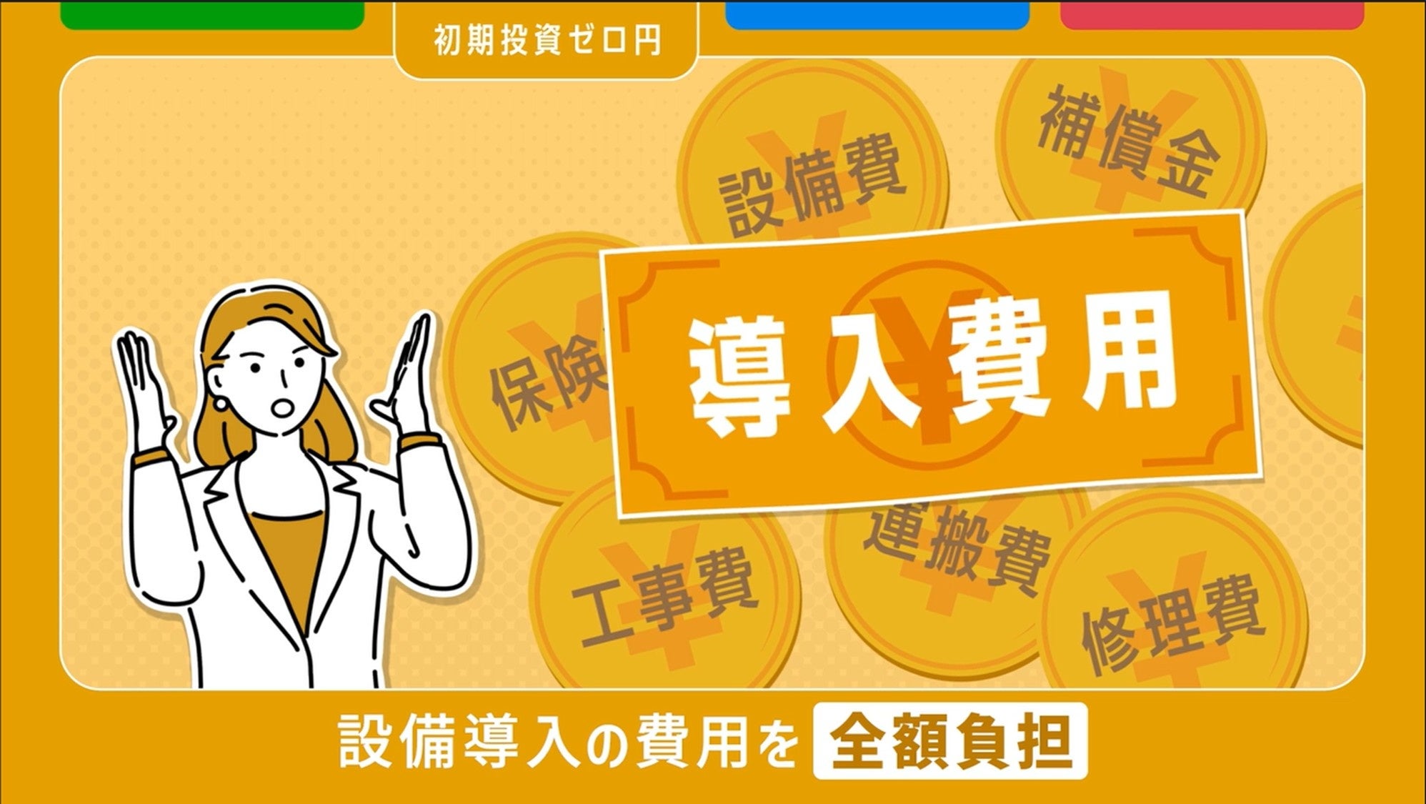設備費・保証金・工事費・運搬費・修理費・保険金などを全額負担するため、お客様の初期投資はかかりません。