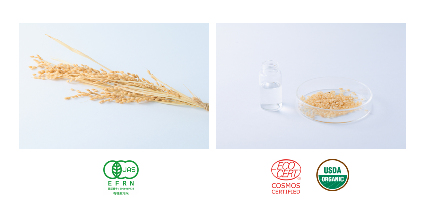 有機JAS認証のオーガニック米から、独自の発酵・蒸留技術をもとに、USDAオーガニック認証およびエコサートCOSMOS認証を取得済みのオーガニックライス・エタノールおよびオーガニック米もろみ粕(蒸留粕)をオーガニック原料として製造してまいりました。エタノールは、国産原料をもとに国内製造しており、国内でオーガニック認証を取得しているのはファーメンステーションのエタノールのみとなります。