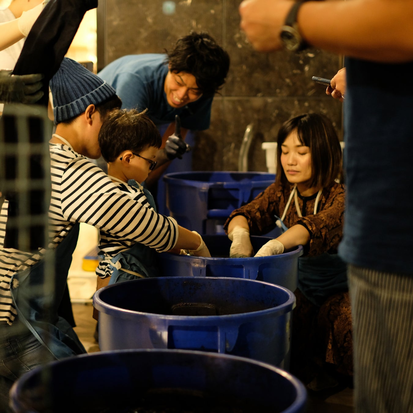 今回、通常では考えられない価格(3,500円・税込)で天然の藍染体験をいただくことができます。それは少しでも多くの方々に天然藍の素晴らしさを身近に味わって欲しいというWatanabe‘sとAllbirdsの願いから。事前予約制のイベントですが、予約状況によっては当日受付枠もご用意する予定です。是非、お気に入りの靴や洋服などを持参して、その手で藍染を体験してください。ワークショップでWatanabe’sの話を聞くと、日本人が大切にしてきた天然藍と美しい文化をも知ることができます。