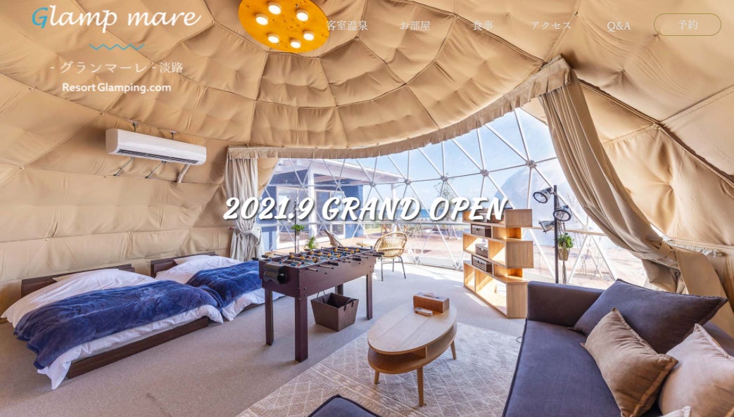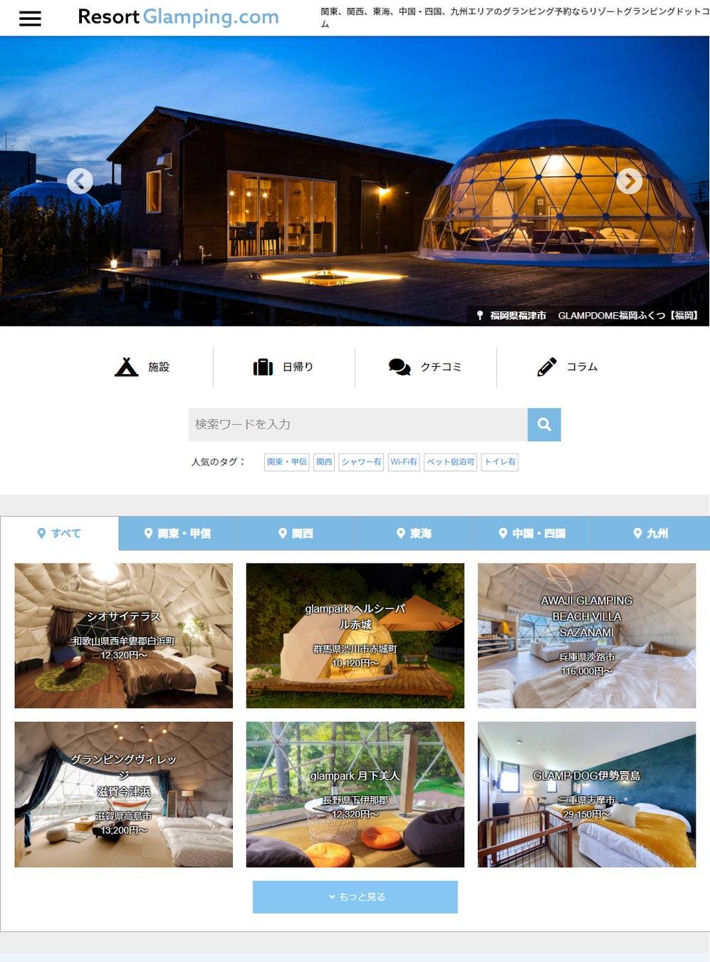 リゾートグランピングドットコムは、コロナ禍で注目を集めているグランピング施設の集客に特化したポータルサイトとして2022年1月時点で全国約90施設の集客支援業務を展開しております。