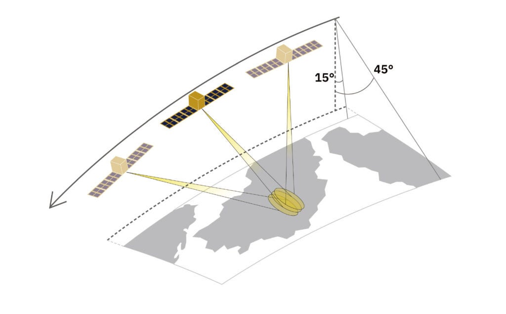 電波を地表の特定箇所に照射し続け、高解像度の画像を得るモードです。従来のスライディング・スポットライトと比較してより観測域を狭めて照射するモードのため、アジマス方向に対してより高解像度の画像を得ることができます。