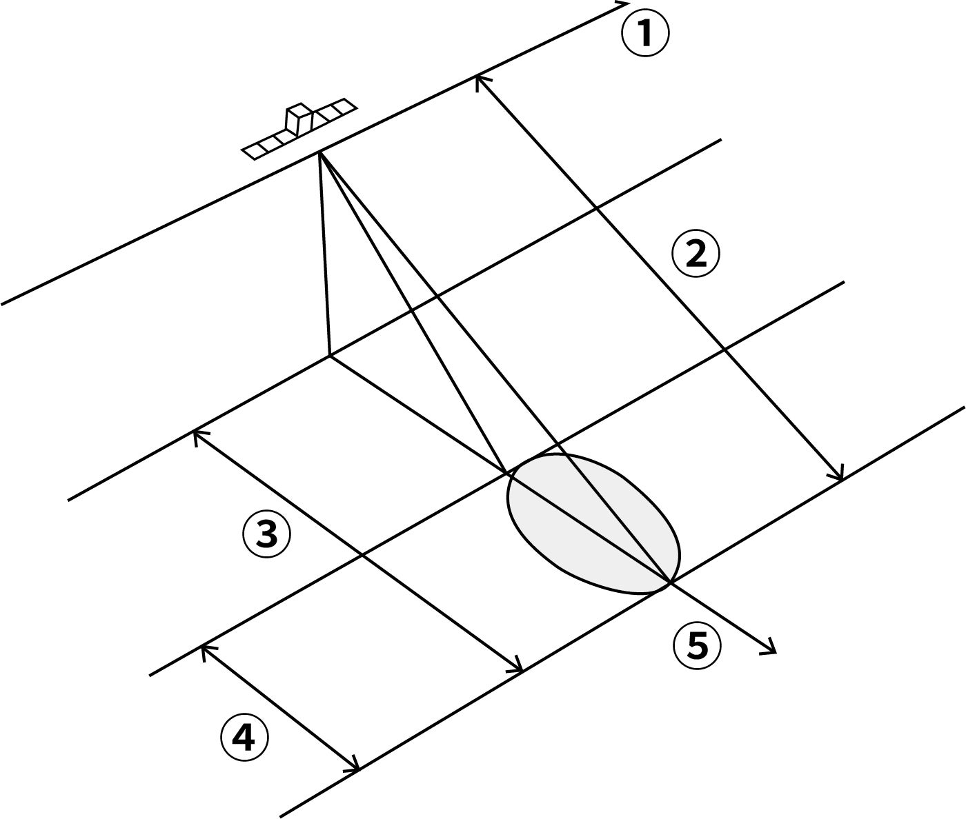 ⑤ Range direction(レンジ方向)衛星の飛行方向から直角に対象物に向かう方向