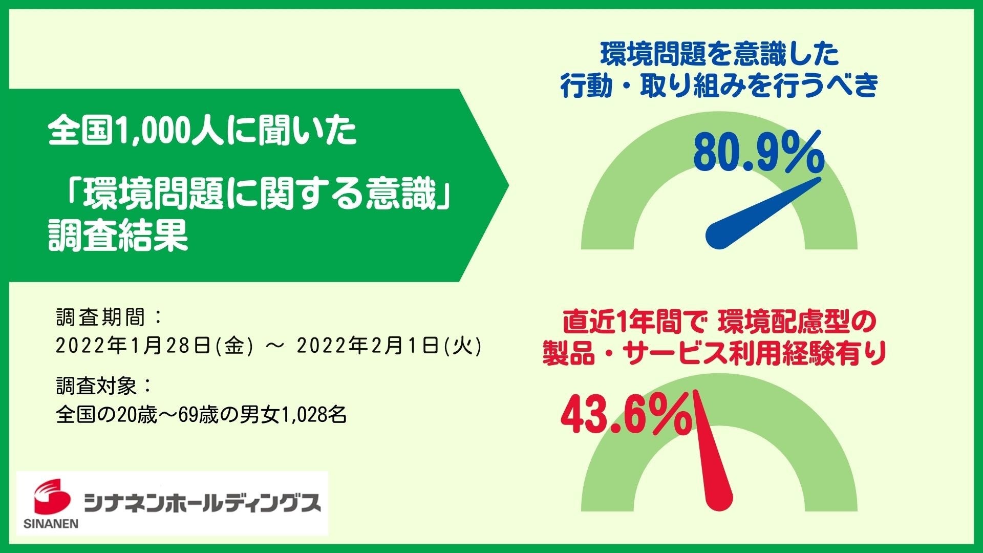 エネルギー・住まい・暮らしの総合サービス事業を提供するシナネンホールディングス株式会社(本社:東京都港区、代表取締役社長:山﨑 正毅、以下 シナネンホールディングス)は、現在社会的な課題となっている環境問題に関して、全国の20代から60代の男女1,028人を対象に「環境問題に関する意識調査」を実施しましたので、調査結果をお知らせします。