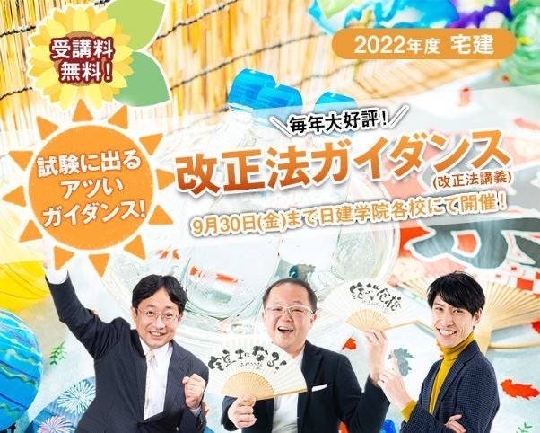 【毎年大好評!】2022年度宅建「改正法ガイダンス」<全国13会場に日建学院人気講師陣が登壇>9月30日(金)まで日建学院各校にて開催!
