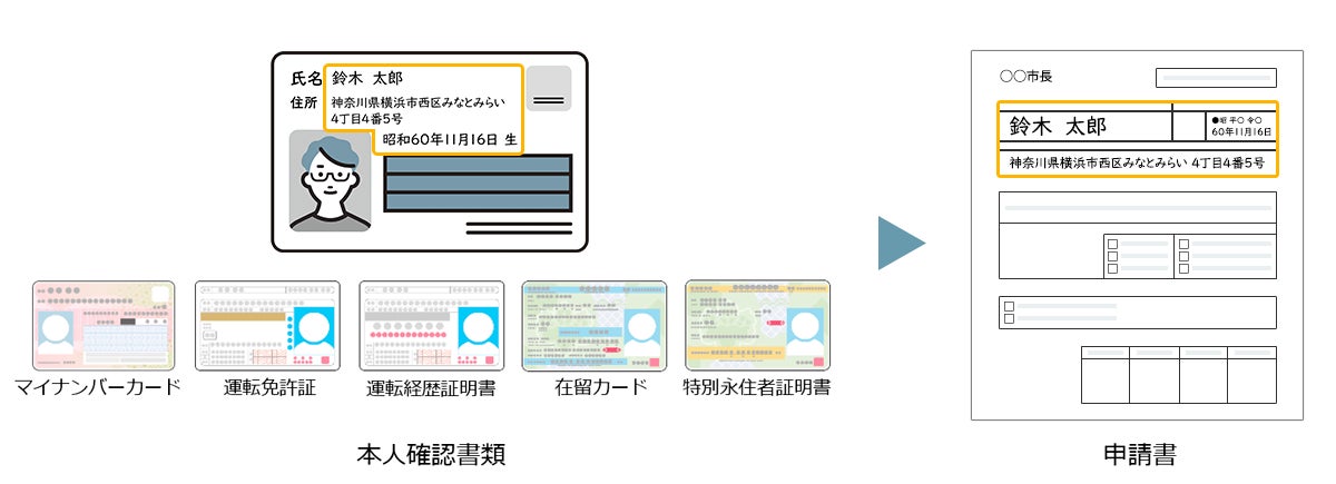 これにより、本人確認書類の氏名・住所などの個人情報があらかじめ印字された申請書を作成することができます。