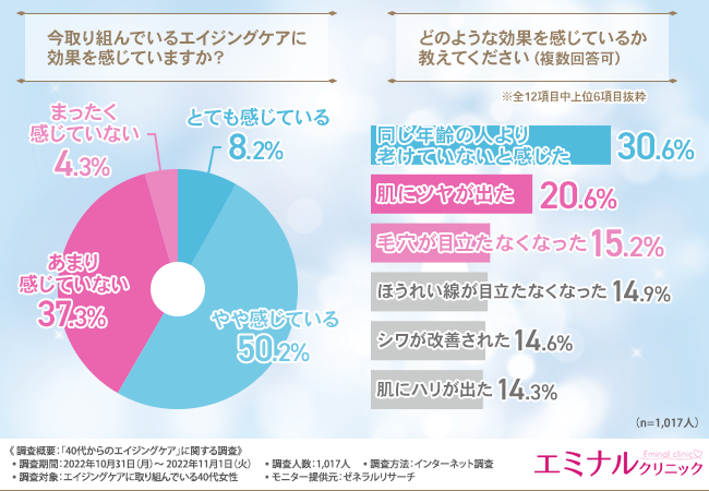 では、エイジングケアの効果についてどのように感じているのでしょうか。