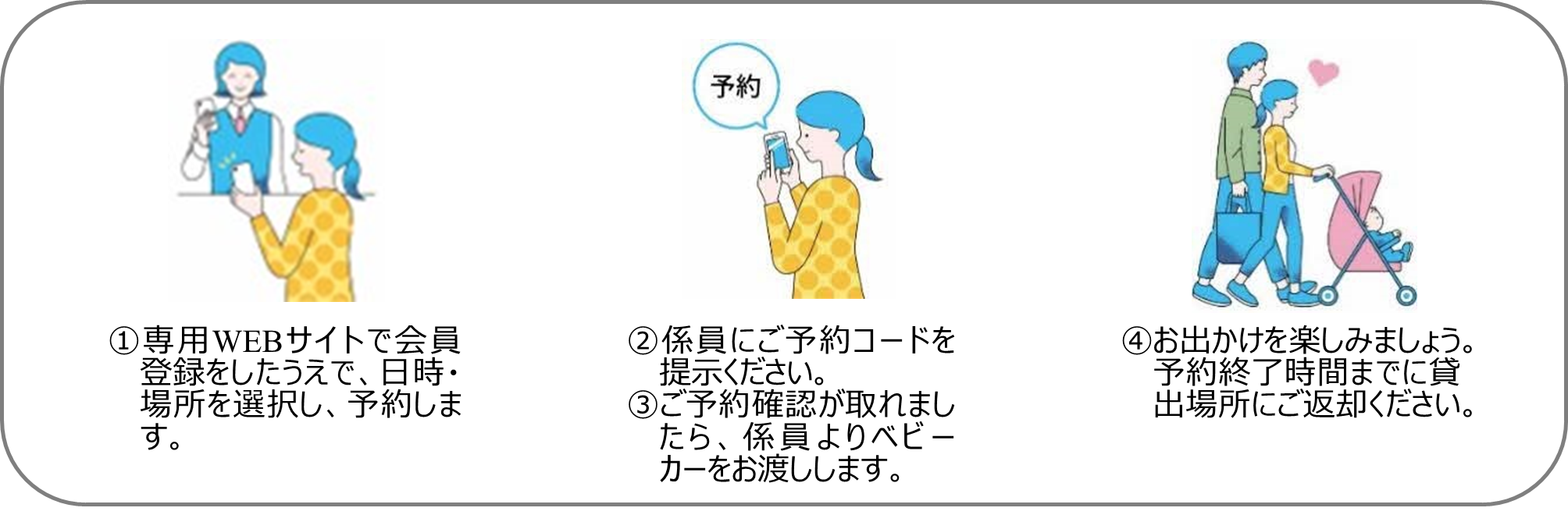 の実現を目的とした、外出先でも便利に利用できる予約可能なベビーカーのレンタルサービスです。