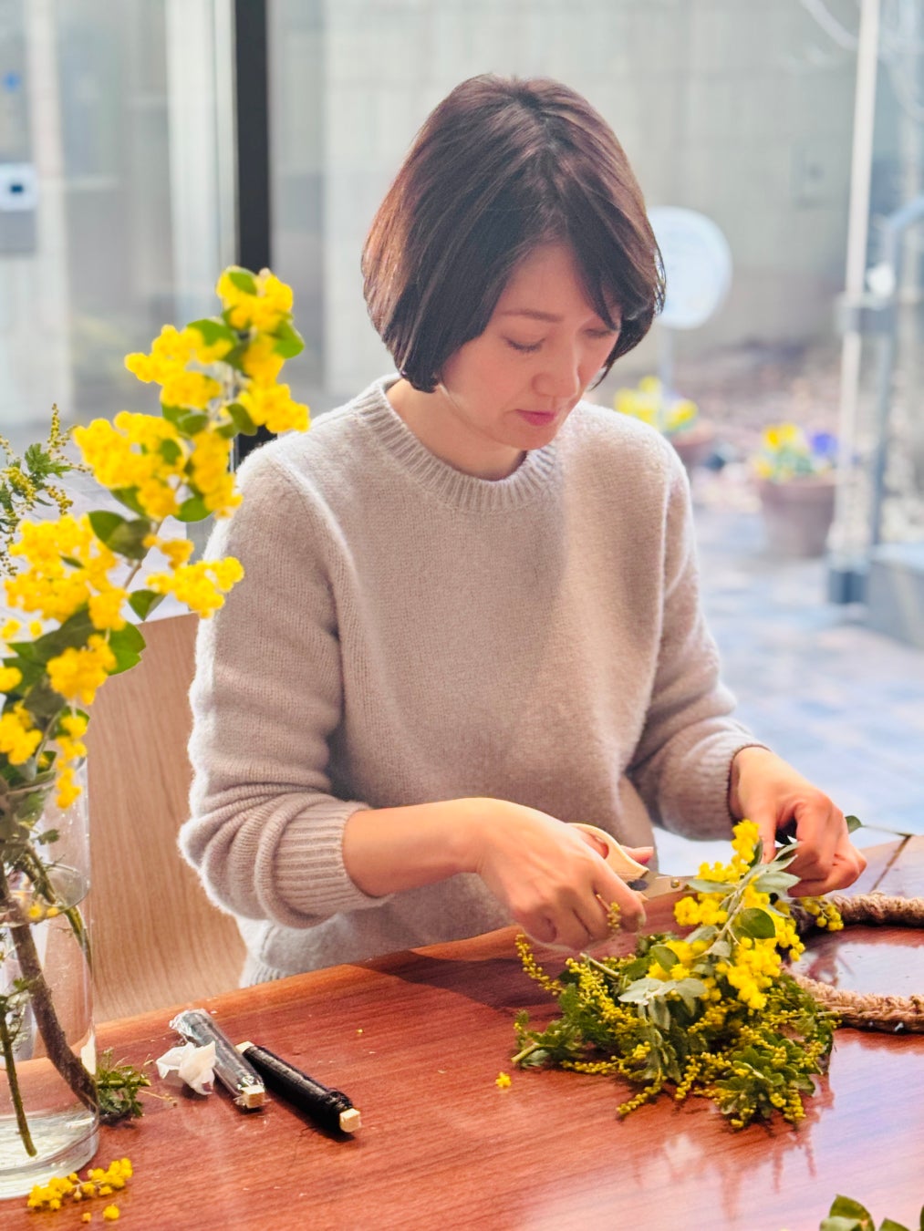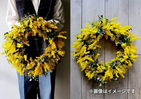 一般クラス:直径約20㎝を1点 *ミモザのみで、1人で1つのリースを仕上げます。