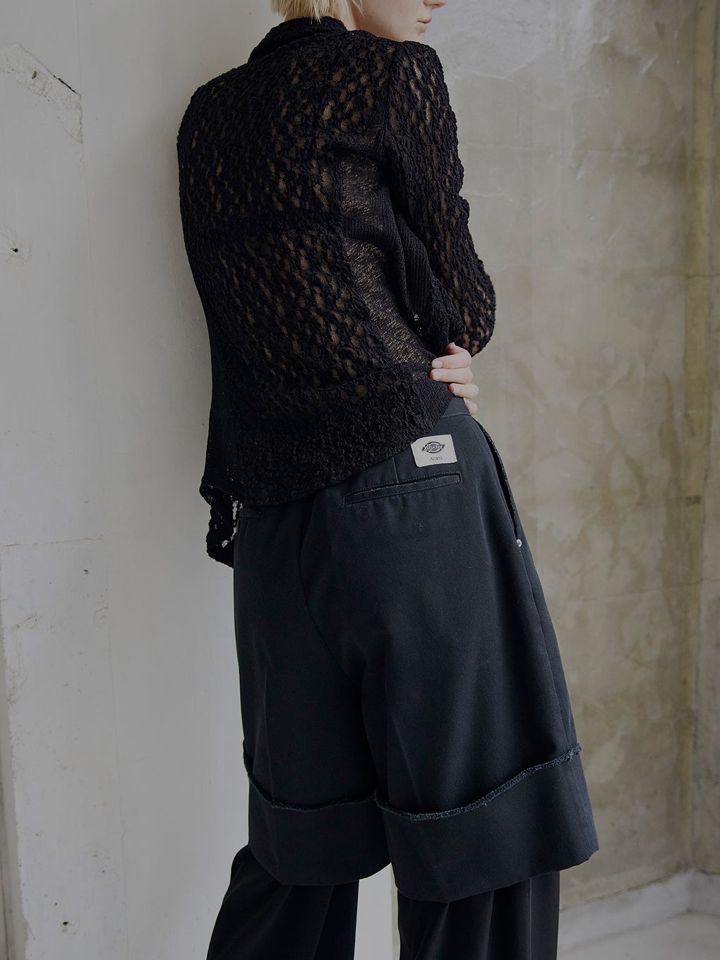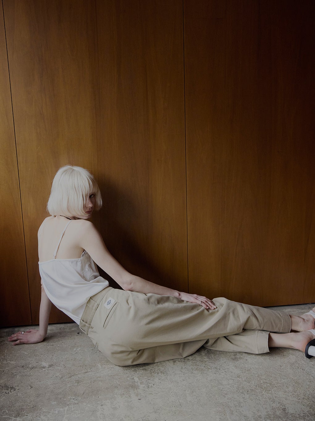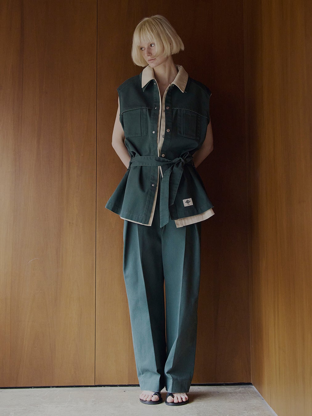 Dickies®︎ならではの本格的な素材やディテールはそのままに、構築的なパターンと繊細なバランスで再構築することで、ワークウェアにAmeriらしいモードさを落とし込みました。