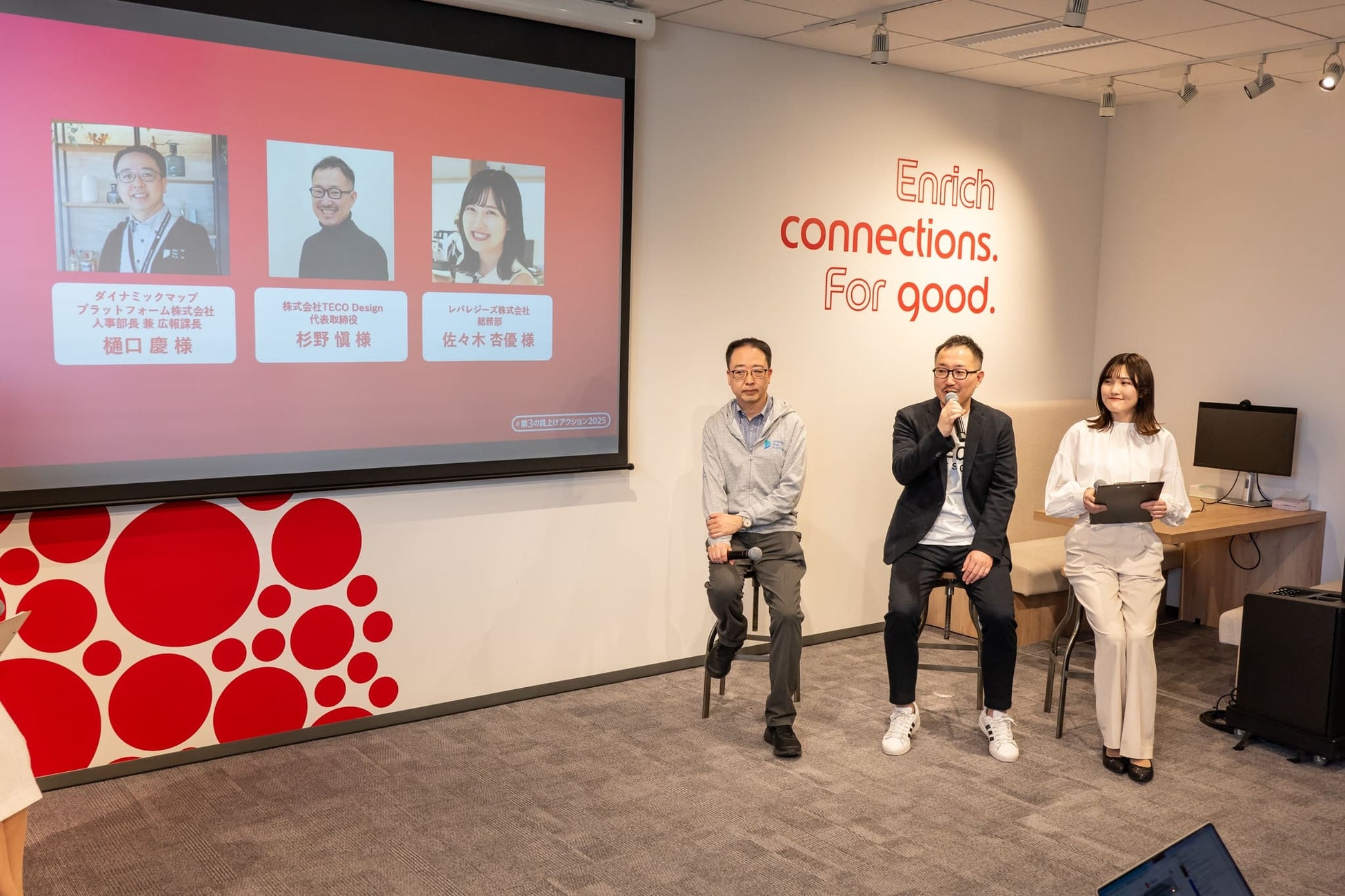 最後は、賛同企業であるダイナミックマッププラットフォーム株式会社 人事部長 兼 広報課長 樋口慶様(チケットレストラン利用)、株式会社TECO Design代表取締役 杉野愼様(freee福利厚生ベネフィットサービス利用)、株式会社レバレジーズ 人事部 佐々木優愛様(ベアーズ家事代行サービス利用)が登壇。中小企業はどう「第3の賃上げ」を活用すべきかをテーマにトークセッションを実施しました。