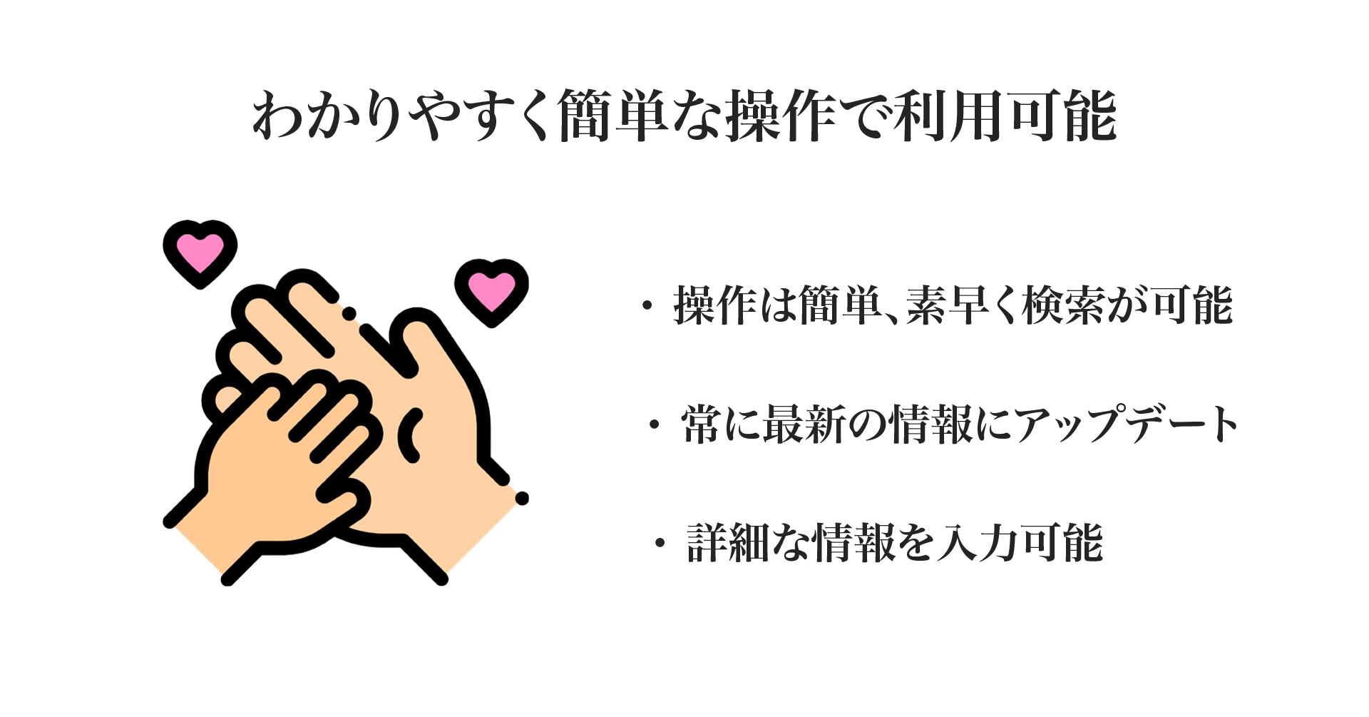 名前を入力して検索するだけでOKの簡単操作です。電話や窓口対応時、スムーズに検索が可能です。