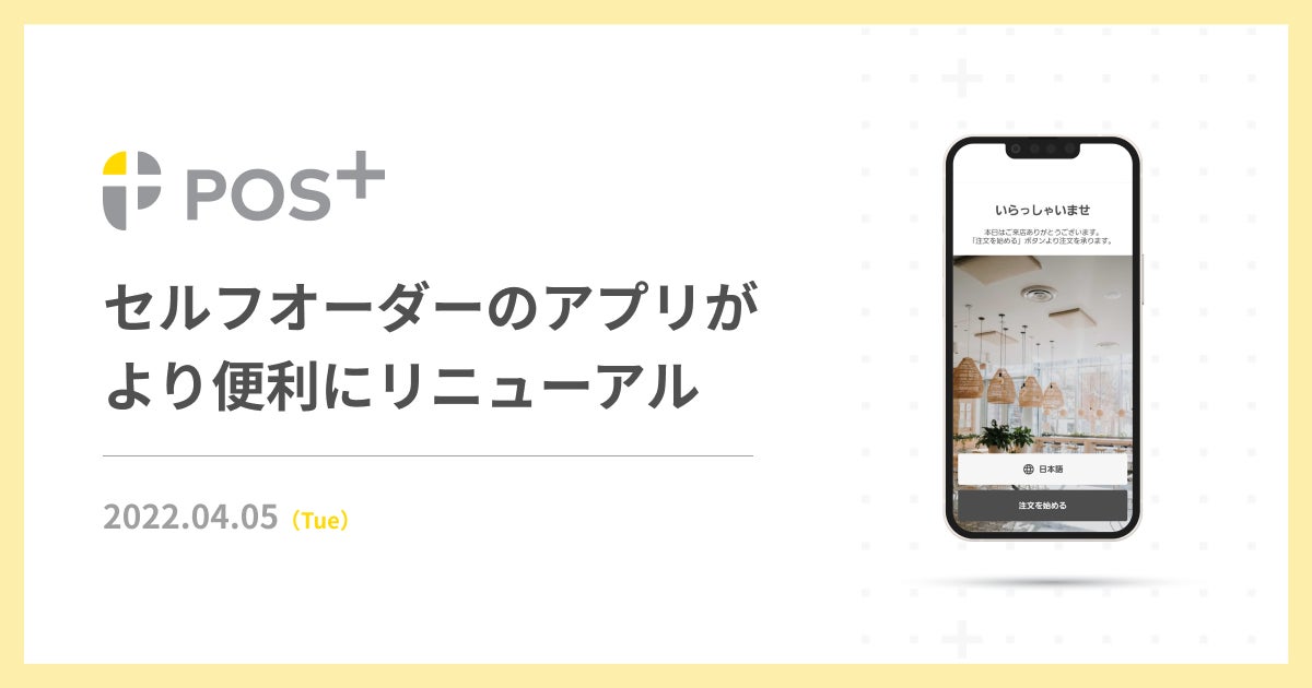 クラウド型モバイルPOSレジ「POS+(ポスタス)」、お客様のスマホで注文できる「セルフオーダー」アプリをより便利に
