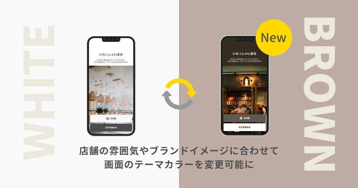 画面のテーマカラーが、「ホワイト」と「ダークブラウン」から選べるようになりました。店舗の雰囲気やブランドイメージに合わせて変更が可能です。