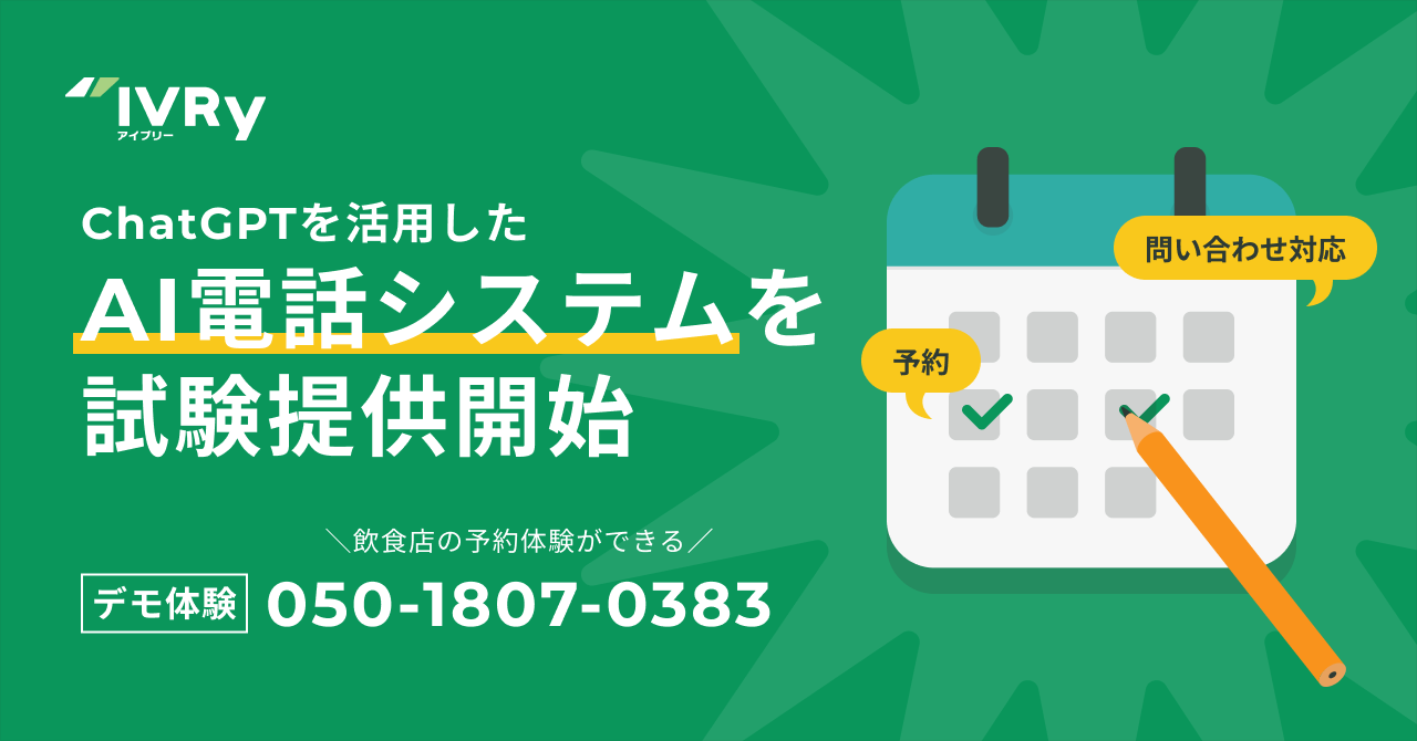 電話DXのIVRy、ChatGPTを活用したAI電話システムの試験提供を開始 〜あらゆる事業者が人のようにスムーズな電話応対を24時間365日利用可能に〜