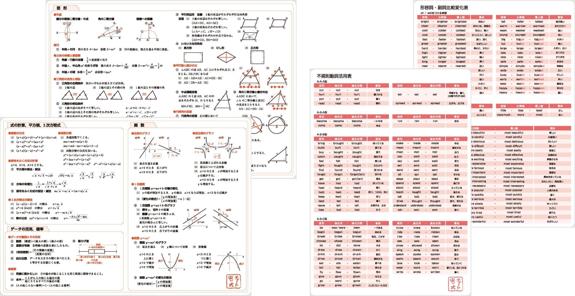 「定理と公式:中学数学」と「英語の活用表」の2種を発売します。数研グッズの人気商品である下敷きの新たなラインアップです。