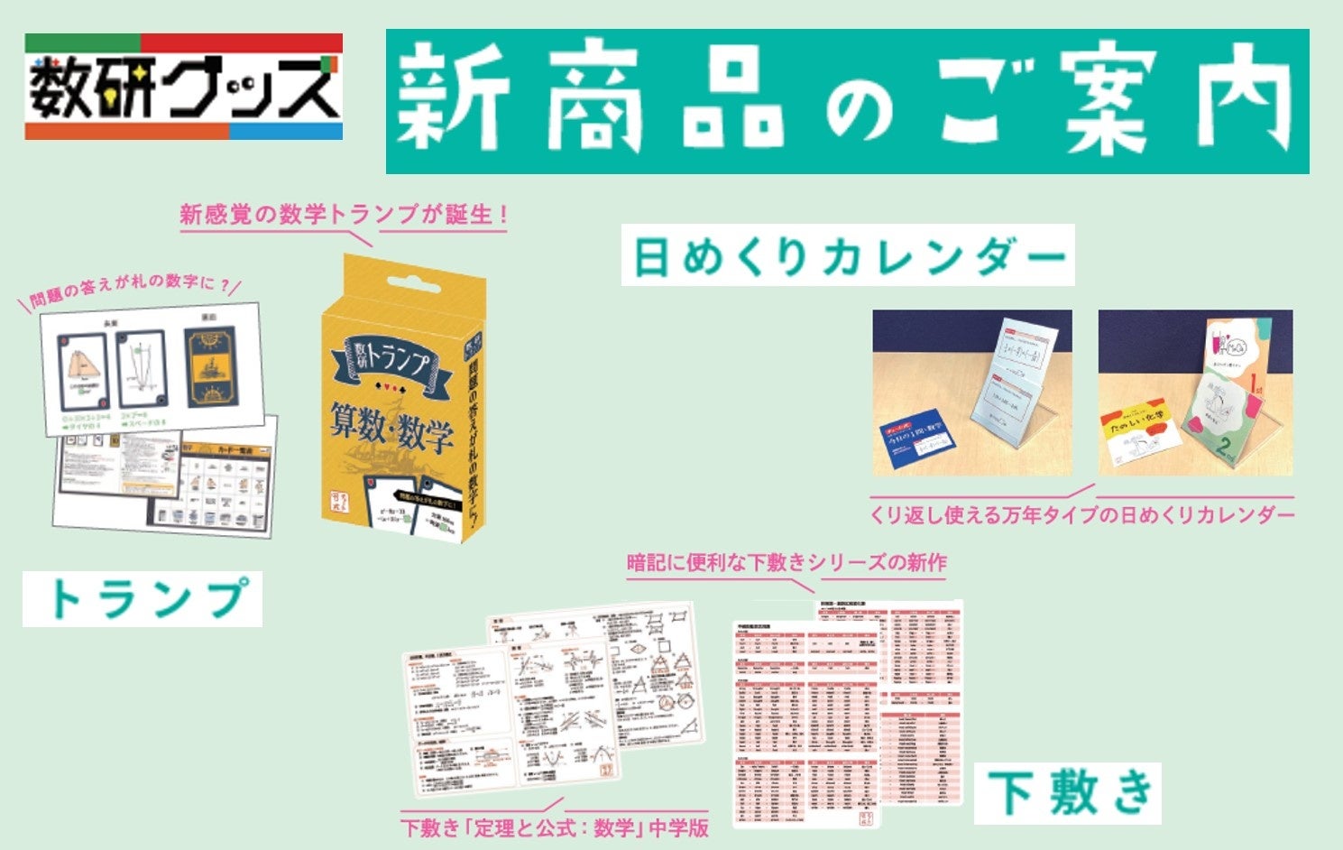 チャート式の数研出版から【数学トランプや、下敷き、日めくりカレンダー】を新発売