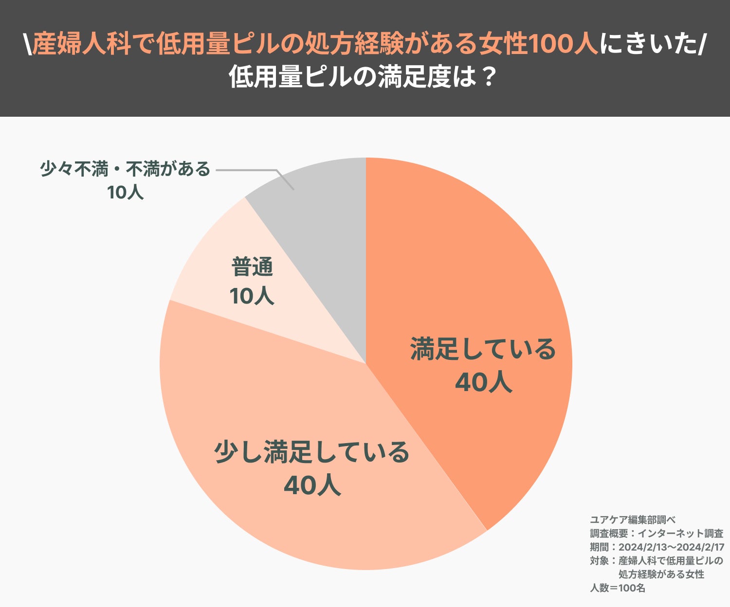 一方で、14%の方は不満があると回答。低用量ピルのほうが満足度が高く、不満も少ないという結果が出ました。