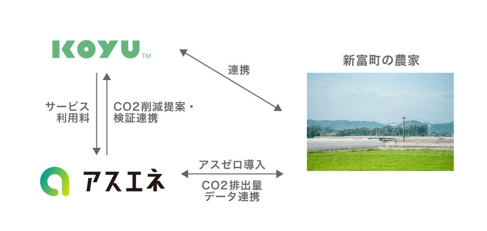 CO2排出量見える化クラウドサービス「アスゼロ」を提供するアスエネ株式会社(本社:東京都港区、代表取締役CEO:西和田 浩平、以下「アスエネ」)は、2021年12月に一般財団法人こゆ地域づくり推進機構(本社:宮崎県児湯郡新富町、代表理事:齋藤 潤一、以下「こゆ財団」)との業務提携を発表。宮崎県新富町は主産業である農業を中心として地域社会の低炭素化を推進しています。2022年上旬には新富町の複数軒の農家についてCO2排出量の見える化および削減プランを策定するため、脱炭素ソリューションの検証をスタートします。