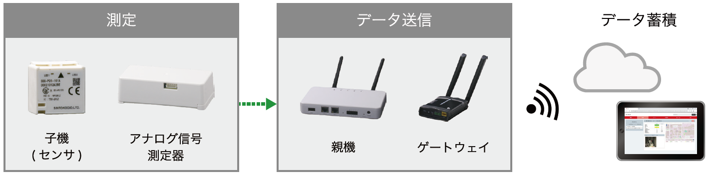 ・アナログ信号測定器・・・汎用的な4-20mA出力付センサが接続可能