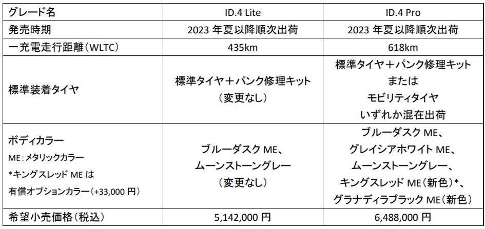 従来「ID.4 Pro Launch Edition」に設定のあったストーンウォッシュドブルーMEは生産終了