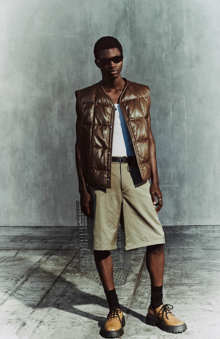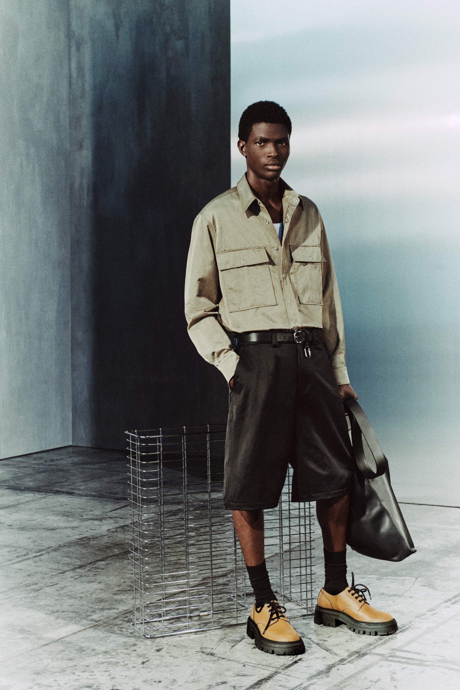シルエットは構造的なアウターウェアスタイル、再構築されたデニム、ストレッチコットンジャージー、ハイテクナイロン、レザー、そして高品質なニットウェアの展開から、マテリアルとレイヤリングのハイブリッドミックスを重視し、抽象的なカラーパレットの中で大胆なポップカラーが特徴的なコレクションです。