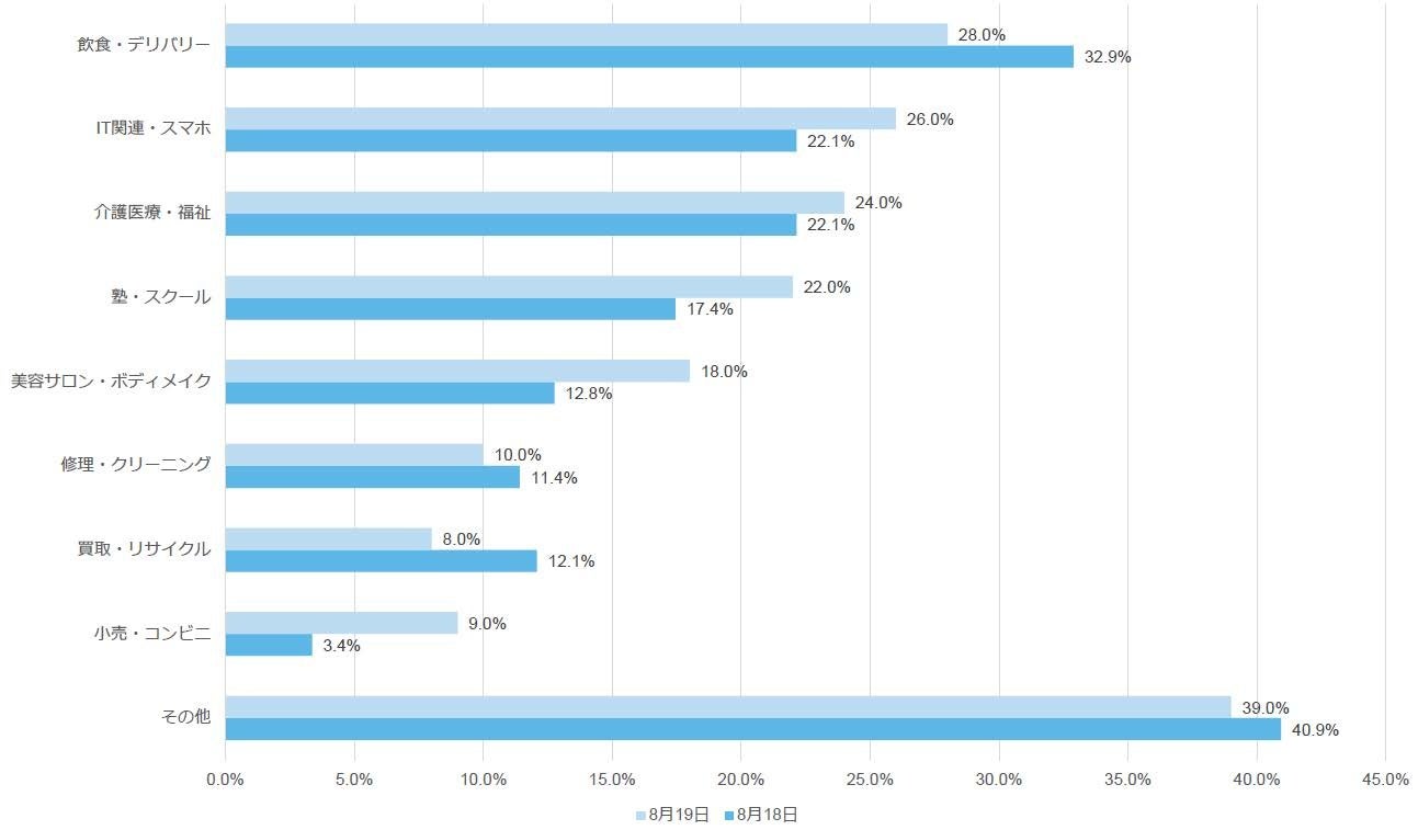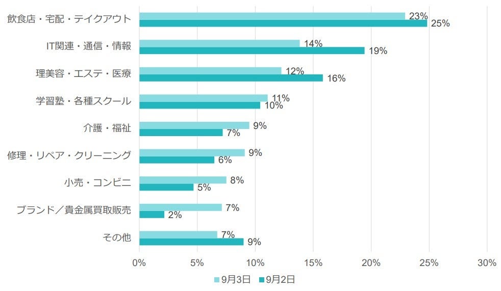 希望の業種・業態:「医療介護・福祉」が初日24.0%/2日目22.1%(2022年は初日9%/2日目7%)