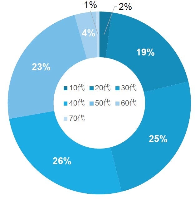 年代:20代~50代と幅広い年代層 性別:男女比は7対3