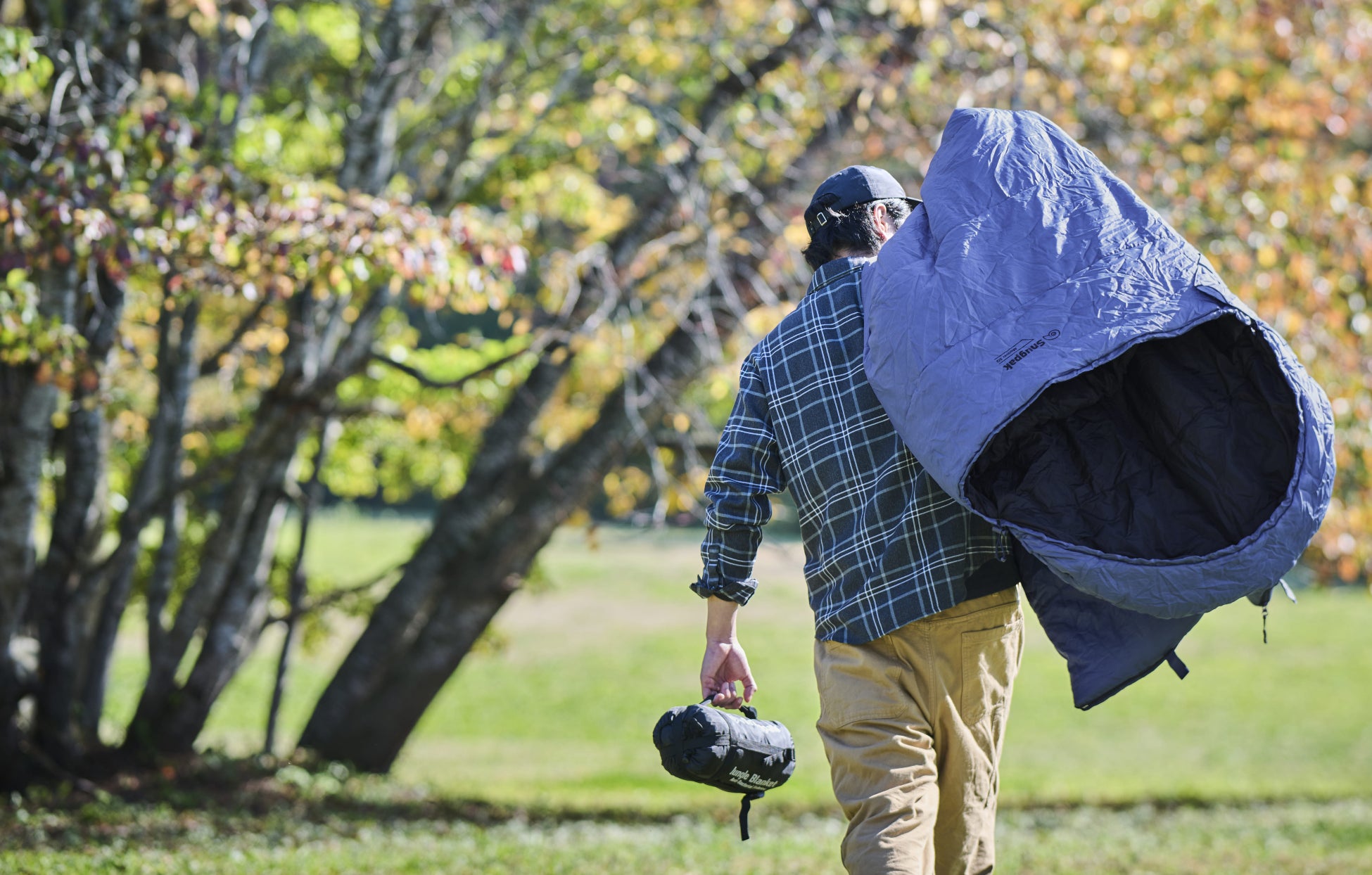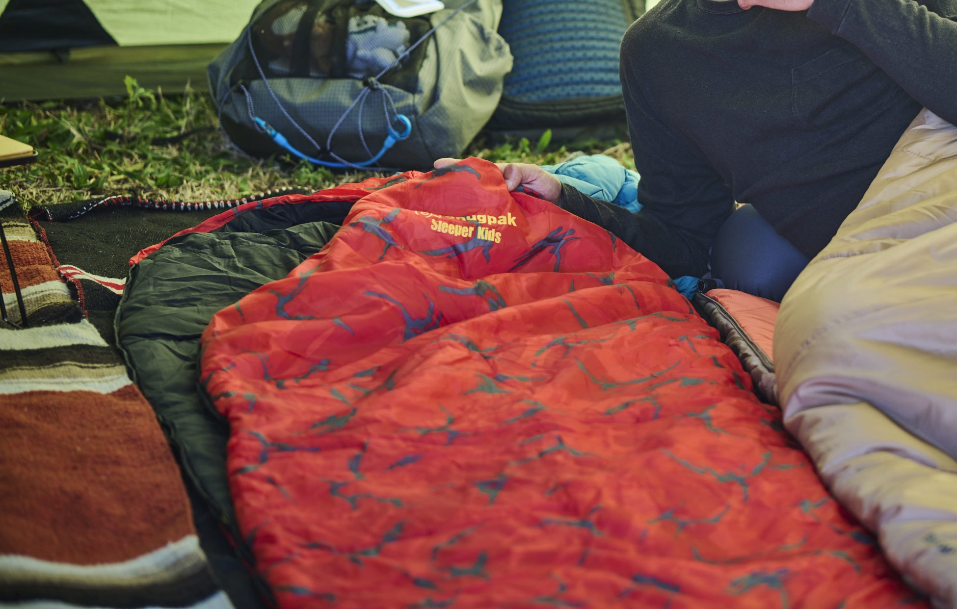 ゆとりのある収納袋は、小さな冒険家たちでも寝袋をしまうことができます。