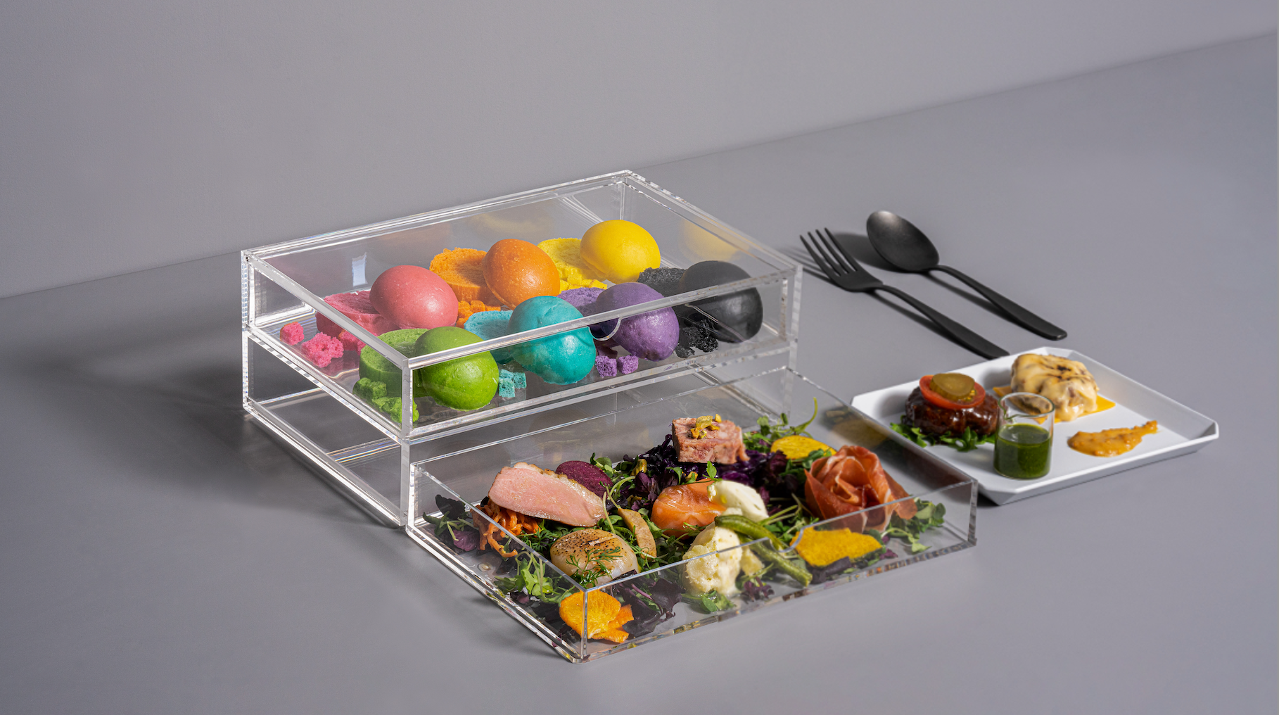 意外性のある素材と見た目のインパクトで、Z世代を中心に話題を集めているバブルスバーガー。植物由来の7色(※)のカラフルバンズに、お好みの具材とソースを挟んで、自分好みのオリジナルバーガーをお作りいただけます。最近では、自分の「推し」のカラーバンズと写真を撮るなどSNSでも話題です。