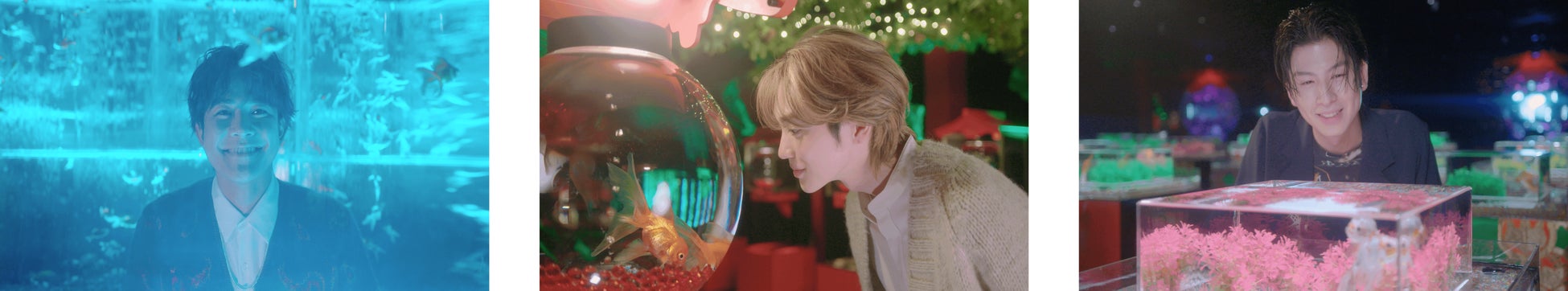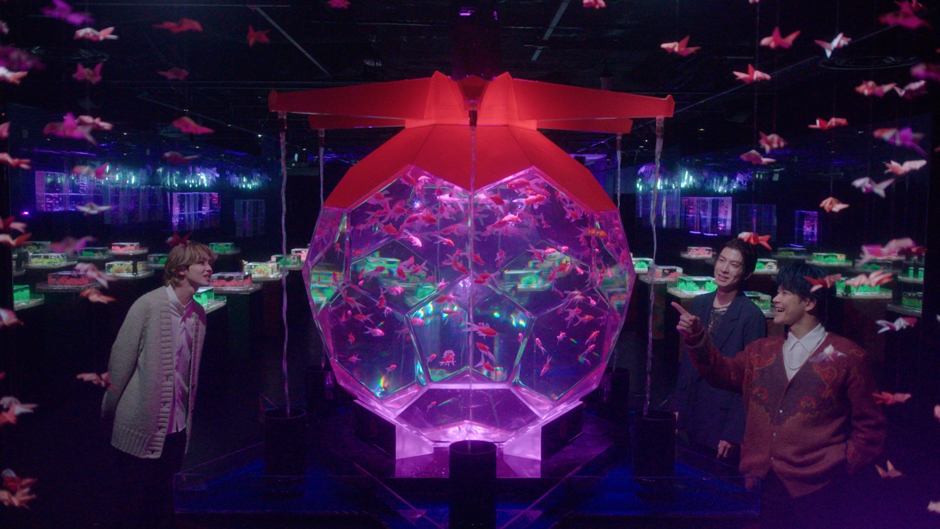 綺麗な金魚を見ながらの撮影はとても楽しく、また思わず金魚に見とれてしまっていました。そんな僕らの素のリアクションがCMに流れると思うので、放映が楽しみです。僕らの曲とともにこの素晴らしい世界観を彩られたらと思います。