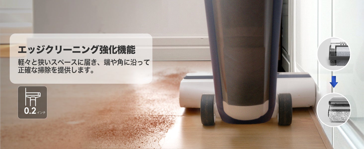 壁との距離が0.2インチの設計があるので、壁際ギリギリまで掃除可能、壁際の埃も逃げしません。日常の掃除が簡単になり、気持ちまですっきり快適です。