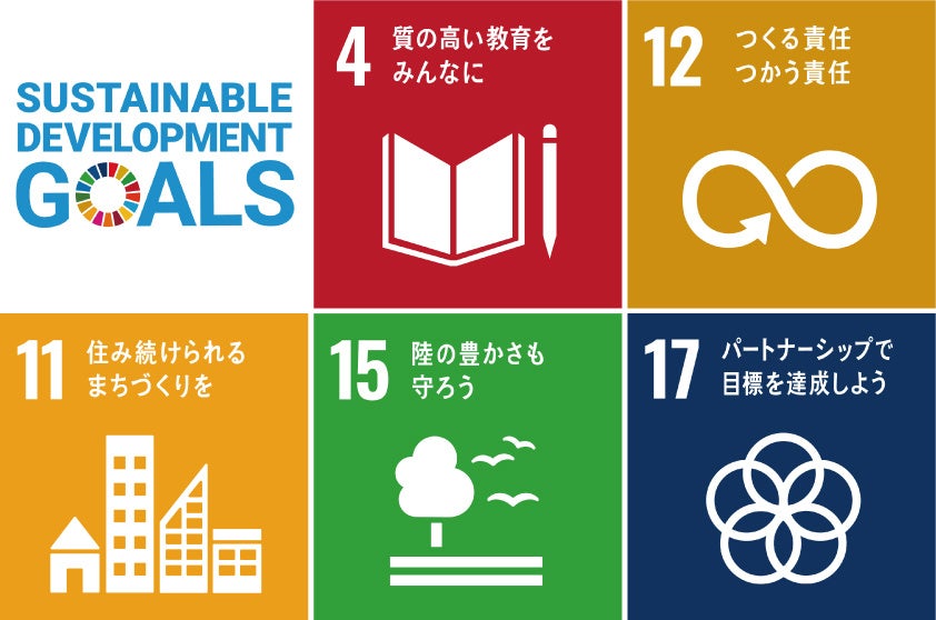 「子ども向け木育活動|200人の子どもたちと作るサステナブルなヒノキのクリスマスツリー」の取り組みは、SDGs(持続可能な開発目標)における5つの目標に貢献しています。
