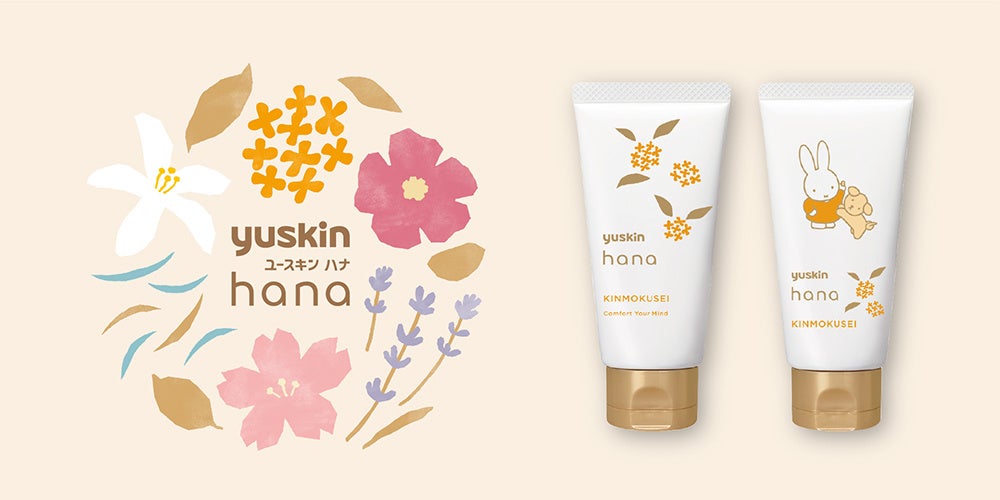 この度、手荒れを予防しながらココロ落ち着く香りでハンドケアを楽しんでいただくため、キンモクセイの香りを発売いたします。多くの方が心待ちにしており、また、日本人になじみの深い花の香りであるからこそ、香りの決定までには何度も試作を重ねました。ユースキンhanaの特長であるほんのり上品な香りを基本に、道端でふわっと香るような、程よい甘さと爽やかさをイメージした香りとなっています。