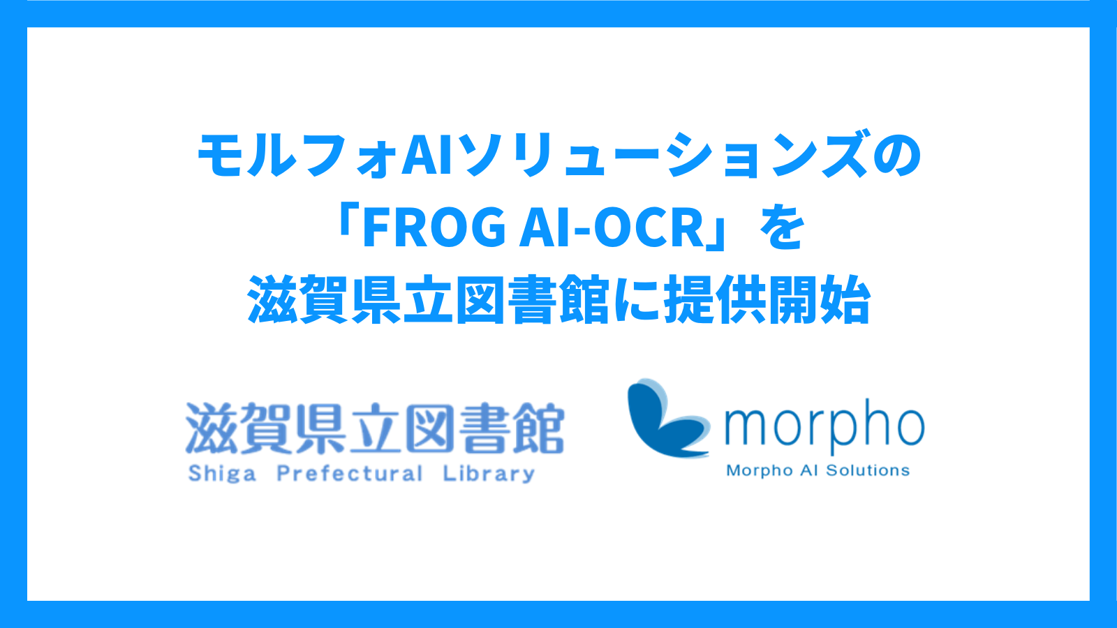 モルフォグループにおいてAIの事業化を担う、株式会社モルフォAIソリューションズ(所在地:東京都千代田区、代表取締役:神田武、以下 モルフォAIS)は、滋賀県立図書館にAI-OCR(注2)ソフトウェア「FROG AI-OCR」のトライアルサービス提供を開始したことをお知らせします。