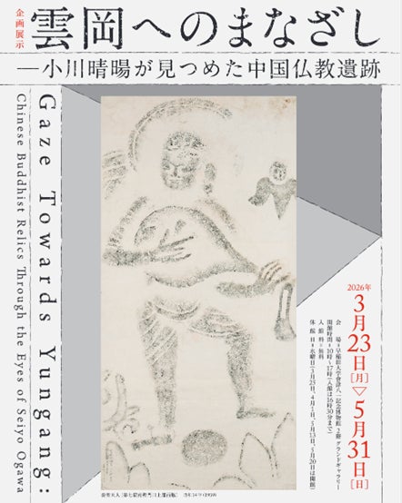 雲岡石窟は北魏時代に造営された壮大な仏教遺跡で、明治以降に再評価され多くの日本人知識人が訪れました。本展では、1939・1941年に雲岡を撮影・拓本・スケッチした仏像写真家・小川晴暘の資料を通して、彼のまなざしと足跡を紹介します。